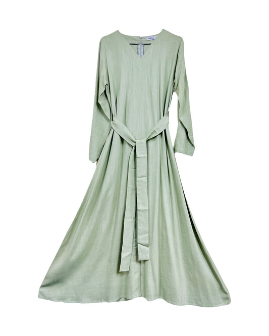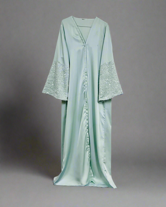 Mizaa Turquoise Green Satin Three Piece Abaya Set